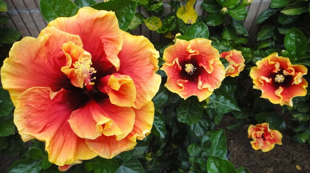 Darren and Len, you guys have made believers out of me! Flickering Flame has been rare because I stopped propagating very many of it. Why? Well, it takes the 6 inch pots a long time to bud up and I was afraid it might not bloom enough to satisfy people. Your photos show that not only does it bloom, it blooms extremely well once it gets some size and age. The bush is lovely with the glossy leaves and the flowers as colorful and fancy as they come. Thanks for sharing your plants and photos, it makes a difference to what we will offer in the future.